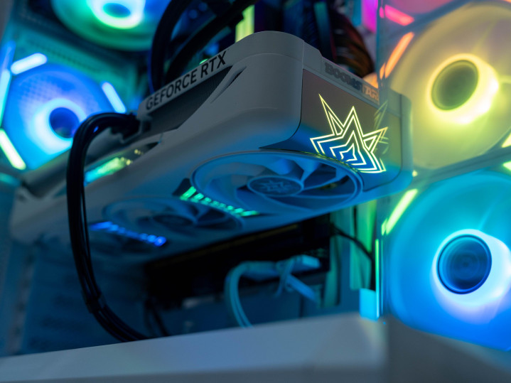 显卡选择影驰 RTX 5070 星曜 LUNA OC,它的一体式磁吸上盖设计不仅让外观更加简洁统一,也让日常清灰维护变得异常轻松。其搭载的磁星MAX散热系统整合了三个95mm新霜环风扇、大面积散热鳍片、一体压铸合金中框与镀镍复合热管,能够确保GPU在高负载下持续稳定输出,为2K分辨率下的高画质游戏体验提供坚实保障。